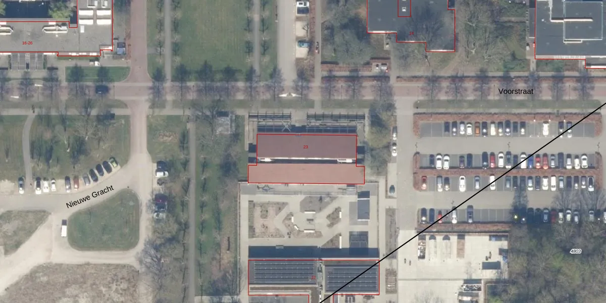 Het perceel waarop Voorstraat 23 staat heeft een oppervlakte van 14,4 ha. Dit is een zeer groot perceel. De perceeloppervlakte wordt geregistreerd door het Kadaster. Gedetailleerde informatie over de maten van dit perceel kunt u vinden in het rapport Kadastrale kaart met maatvoering van Voorstraat 23.