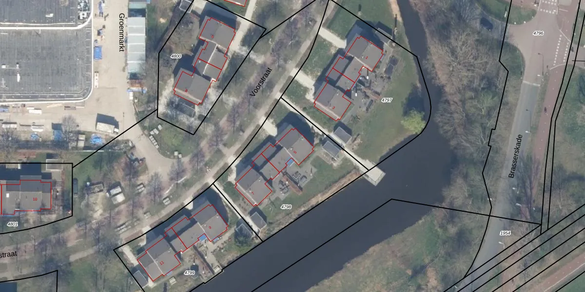 Het perceel waarop Voorstraat 5 staat heeft een oppervlakte van 1278 m². Dit is een zeer groot perceel. De perceeloppervlakte wordt geregistreerd door het Kadaster. Gedetailleerde informatie over de maten van dit perceel kunt u vinden in het rapport Kadastrale kaart met maatvoering van Voorstraat 5.