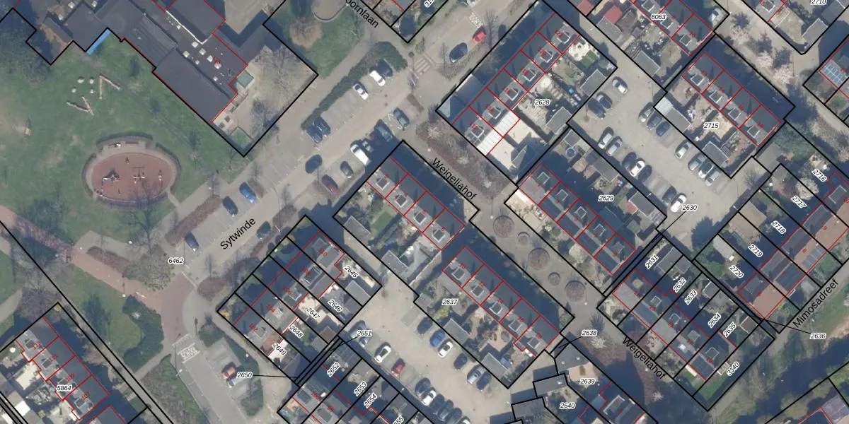 Weigeliahof 6 is gelegen op kadastraal perceel NDP01A2637. Deze kadastrale aanduiding is uniek en wordt gebruikt door het Kadaster om eigendomsrechten en andere zakelijke rechten vast te leggen. Het perceel maakt onderdeel uit van de kadastrale gemeente Nootdorp.