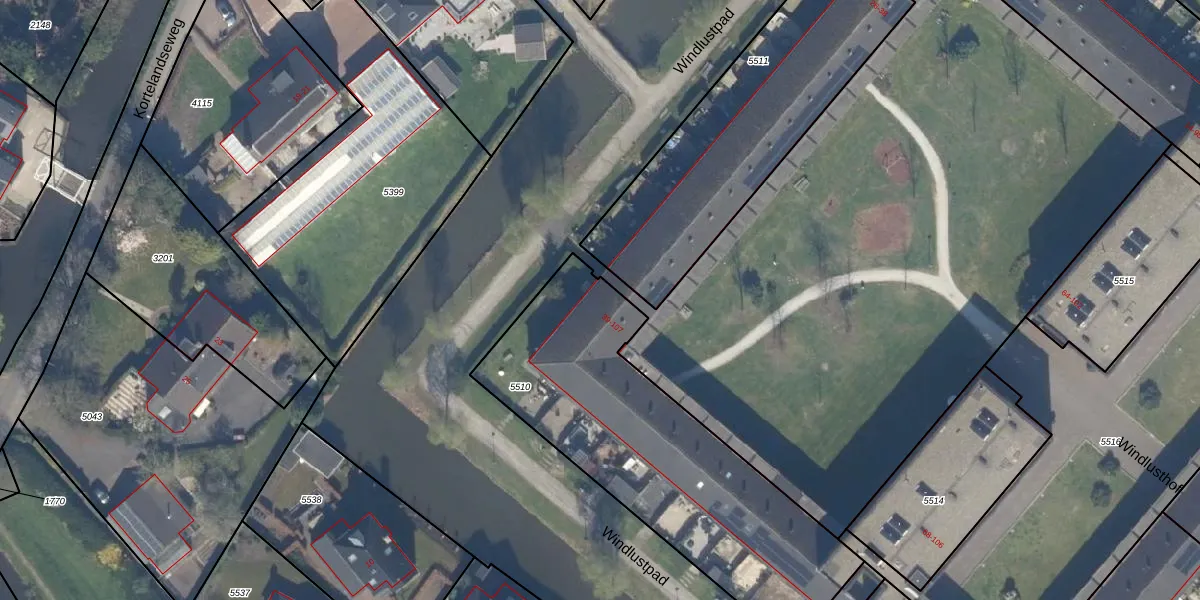 Het perceel waarop Windlusthof 39 staat heeft een oppervlakte van 1445 m². Dit is een zeer groot perceel. De perceeloppervlakte wordt geregistreerd door het Kadaster. Gedetailleerde informatie over de maten van dit perceel kunt u vinden in het rapport Kadastrale kaart met maatvoering van Windlusthof 39.