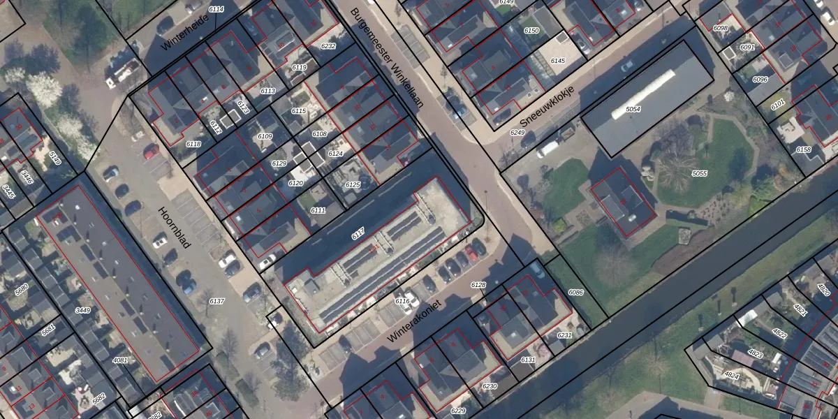 Het perceel waarop Winterakoniet 39 staat heeft een oppervlakte van 1130 m². Dit is een zeer groot perceel. De perceeloppervlakte wordt geregistreerd door het Kadaster. Gedetailleerde informatie over de maten van dit perceel kunt u vinden in het rapport Kadastrale kaart met maatvoering van Winterakoniet 39.