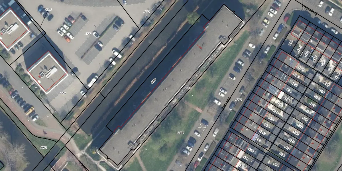 Het perceel waarop Zetveld 66 staat heeft een oppervlakte van 2059 m². Dit is een zeer groot perceel. De perceeloppervlakte wordt geregistreerd door het Kadaster. Gedetailleerde informatie over de maten van dit perceel kunt u vinden in het rapport Kadastrale kaart met maatvoering van Zetveld 66.