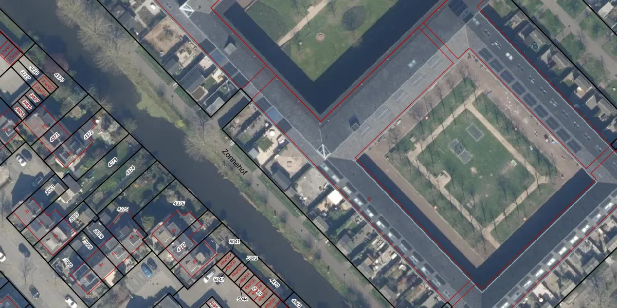 Het perceel waarop Zonnehof 128 staat heeft een oppervlakte van 4,5 ha. Dit is een zeer groot perceel. De perceeloppervlakte wordt geregistreerd door het Kadaster. Gedetailleerde informatie over de maten van dit perceel kunt u vinden in het rapport Kadastrale kaart met maatvoering van Zonnehof 128.