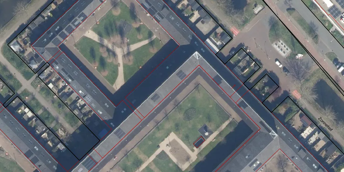 Het perceel waarop Zonnehof 166 staat heeft een oppervlakte van 4,5 ha. Dit is een zeer groot perceel. De perceeloppervlakte wordt geregistreerd door het Kadaster. Gedetailleerde informatie over de maten van dit perceel kunt u vinden in het rapport Kadastrale kaart met maatvoering van Zonnehof 166.