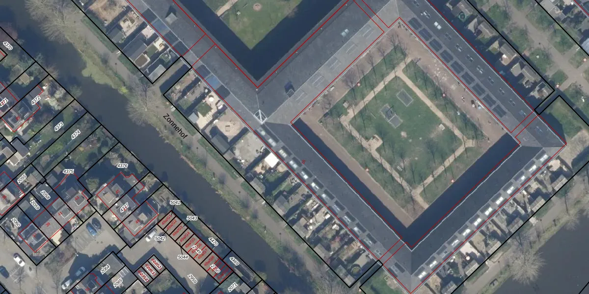 Het perceel waarop Zonnehof 246 staat heeft een oppervlakte van 4,5 ha. Dit is een zeer groot perceel. De perceeloppervlakte wordt geregistreerd door het Kadaster. Gedetailleerde informatie over de maten van dit perceel kunt u vinden in het rapport Kadastrale kaart met maatvoering van Zonnehof 246.