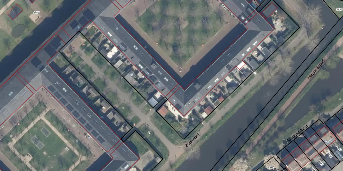 Het perceel waarop Zonnehof 62 staat heeft een oppervlakte van 4,5 ha. Dit is een zeer groot perceel. De perceeloppervlakte wordt geregistreerd door het Kadaster. Gedetailleerde informatie over de maten van dit perceel kunt u vinden in het rapport Kadastrale kaart met maatvoering van Zonnehof 62.