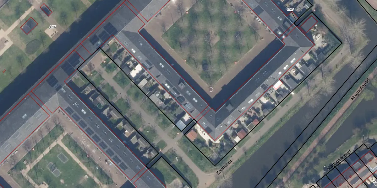 Het perceel waarop Zonnehof 64 staat heeft een oppervlakte van 4,5 ha. Dit is een zeer groot perceel. De perceeloppervlakte wordt geregistreerd door het Kadaster. Gedetailleerde informatie over de maten van dit perceel kunt u vinden in het rapport Kadastrale kaart met maatvoering van Zonnehof 64.