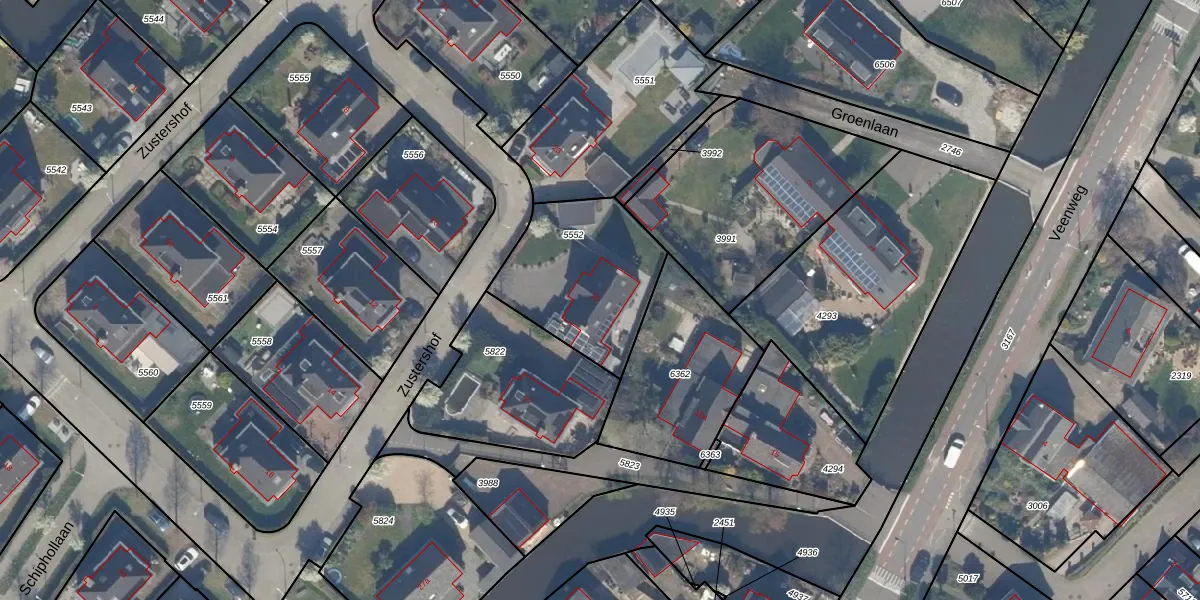 Gebruik de zoekbalk of klik op een perceel voor informatie over de adressen binnen dit perceel.