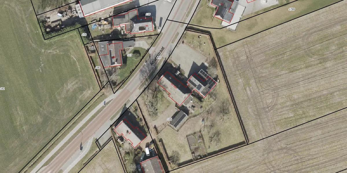 Het perceel waarop Asserstraat 45 staat heeft een oppervlakte van 3165 m². Dit is een zeer groot perceel. De perceeloppervlakte wordt geregistreerd door het Kadaster. Gedetailleerde informatie over de maten van dit perceel kunt u vinden in het rapport Kadastrale kaart met maatvoering van Asserstraat 45.