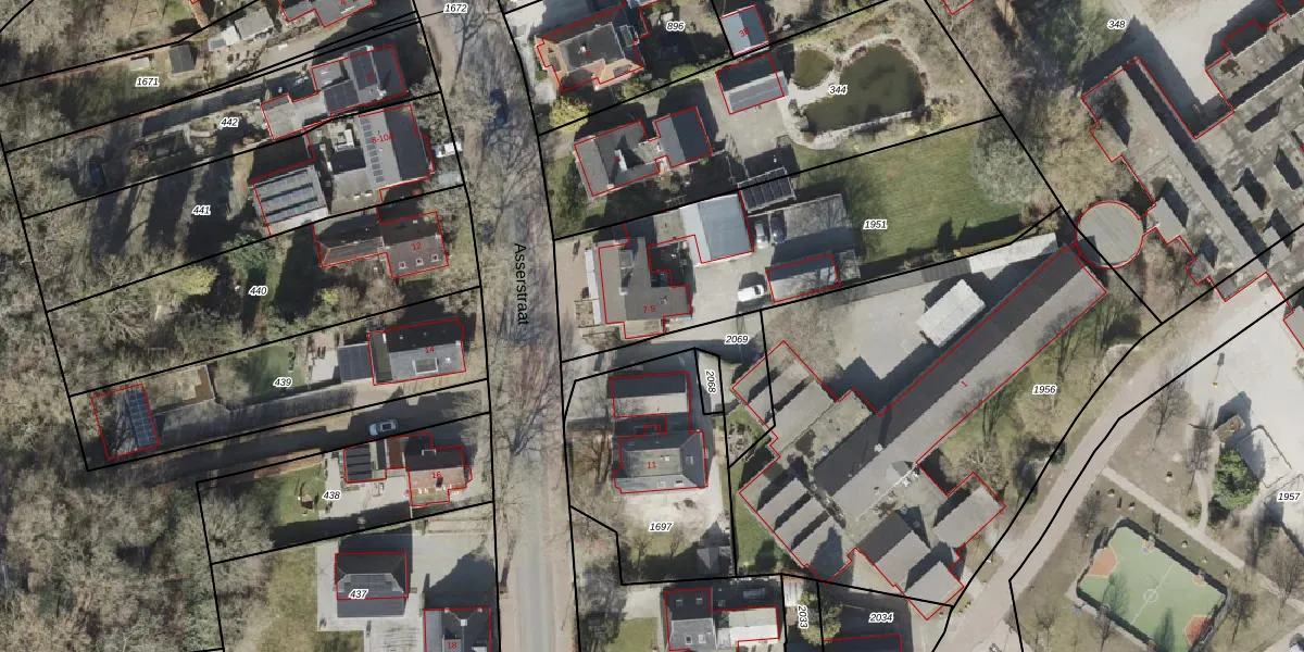 Het perceel waarop Asserstraat 7-C staat heeft een oppervlakte van 1409 m². Dit is een zeer groot perceel. De perceeloppervlakte wordt geregistreerd door het Kadaster. Gedetailleerde informatie over de maten van dit perceel kunt u vinden in het rapport Kadastrale kaart met maatvoering van Asserstraat 7-C.