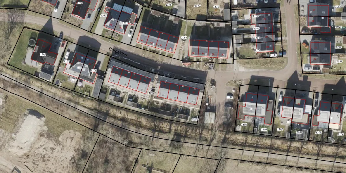 Het perceel waarop Bergakker 41 staat heeft een oppervlakte van 1422 m². Dit is een zeer groot perceel. De perceeloppervlakte wordt geregistreerd door het Kadaster. Gedetailleerde informatie over de maten van dit perceel kunt u vinden in het rapport Kadastrale kaart met maatvoering van Bergakker 41.