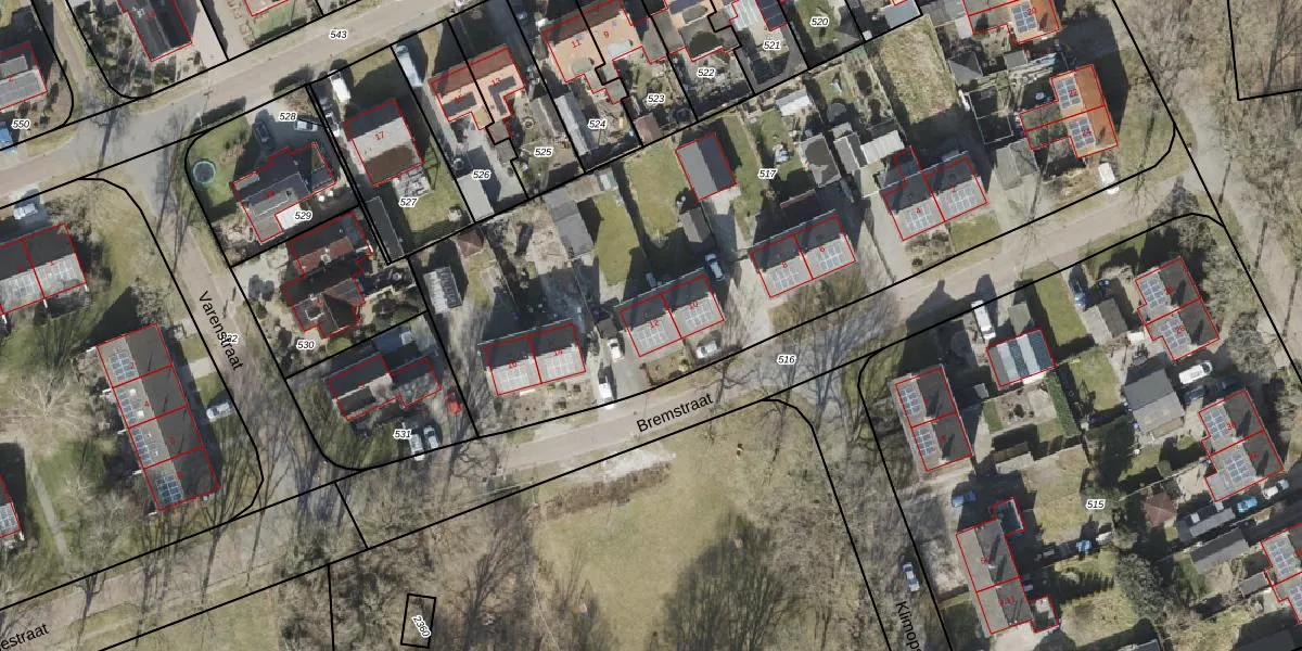 Het perceel waarop Bremstraat 12 staat heeft een oppervlakte van 4463 m². Dit is een zeer groot perceel. De perceeloppervlakte wordt geregistreerd door het Kadaster. Gedetailleerde informatie over de maten van dit perceel kunt u vinden in het rapport Kadastrale kaart met maatvoering van Bremstraat 12.