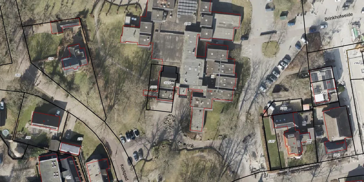 Het perceel waarop Brink 1 staat heeft een oppervlakte van 2,1 ha. Dit is een zeer groot perceel. De perceeloppervlakte wordt geregistreerd door het Kadaster. Gedetailleerde informatie over de maten van dit perceel kunt u vinden in het rapport Kadastrale kaart met maatvoering van Brink 1.