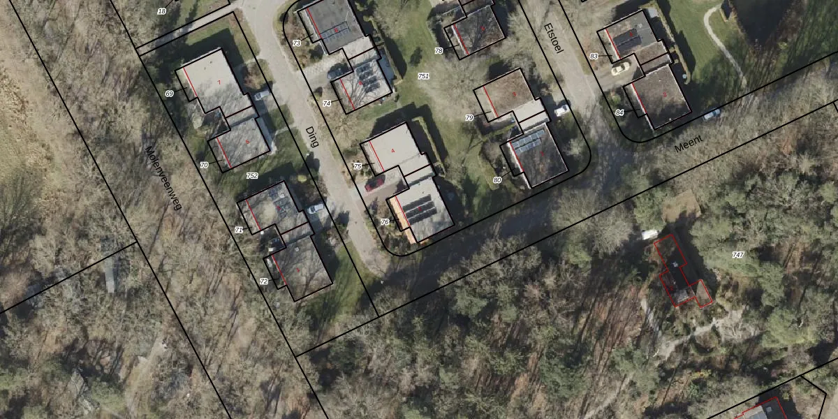 Het perceel waarop Ding 2 staat heeft een oppervlakte van 166 m². Dit is een middelgroot perceel. De perceeloppervlakte wordt geregistreerd door het Kadaster. Gedetailleerde informatie over de maten van dit perceel kunt u vinden in het rapport Kadastrale kaart met maatvoering van Ding 2.