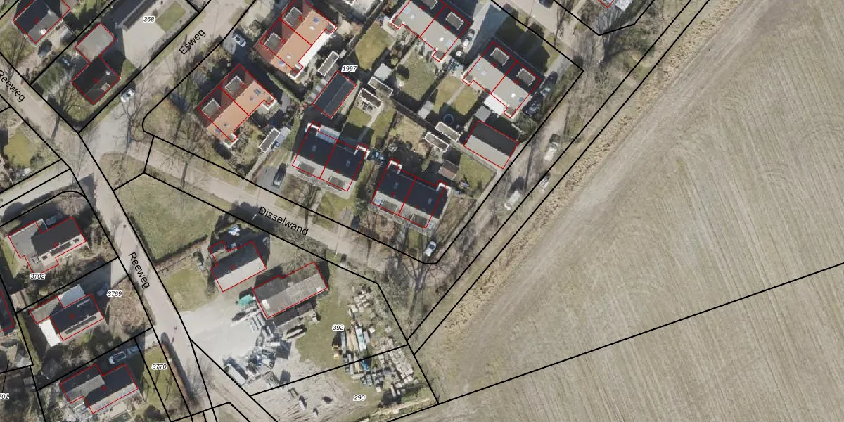 Het perceel waarop Disselwand 7 staat heeft een oppervlakte van 4878 m². Dit is een zeer groot perceel. De perceeloppervlakte wordt geregistreerd door het Kadaster. Gedetailleerde informatie over de maten van dit perceel kunt u vinden in het rapport Kadastrale kaart met maatvoering van Disselwand 7.