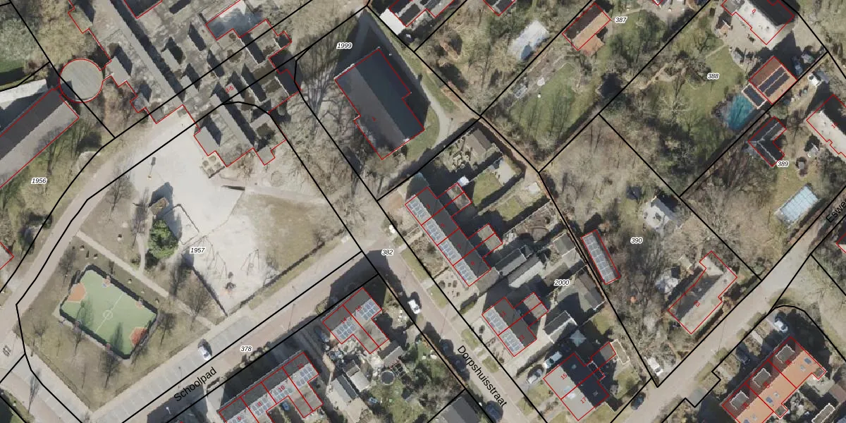 Het perceel waarop Dorpshuisstraat 3 staat heeft een oppervlakte van 2338 m². Dit is een zeer groot perceel. De perceeloppervlakte wordt geregistreerd door het Kadaster. Gedetailleerde informatie over de maten van dit perceel kunt u vinden in het rapport Kadastrale kaart met maatvoering van Dorpshuisstraat 3.