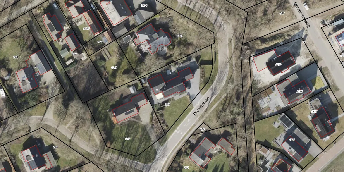 Drostenlaan 3 is gelegen op kadastraal perceel NOR00R239. Deze kadastrale aanduiding is uniek en wordt gebruikt door het Kadaster om eigendomsrechten en andere zakelijke rechten vast te leggen. Het perceel maakt onderdeel uit van de kadastrale gemeente Norg.