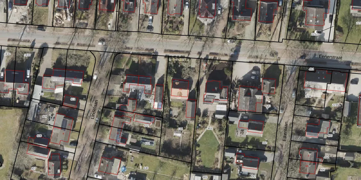 Het perceel waarop Eenerstraat 15 staat heeft een oppervlakte van 1026 m². Dit is een zeer groot perceel. De perceeloppervlakte wordt geregistreerd door het Kadaster. Gedetailleerde informatie over de maten van dit perceel kunt u vinden in het rapport Kadastrale kaart met maatvoering van Eenerstraat 15.