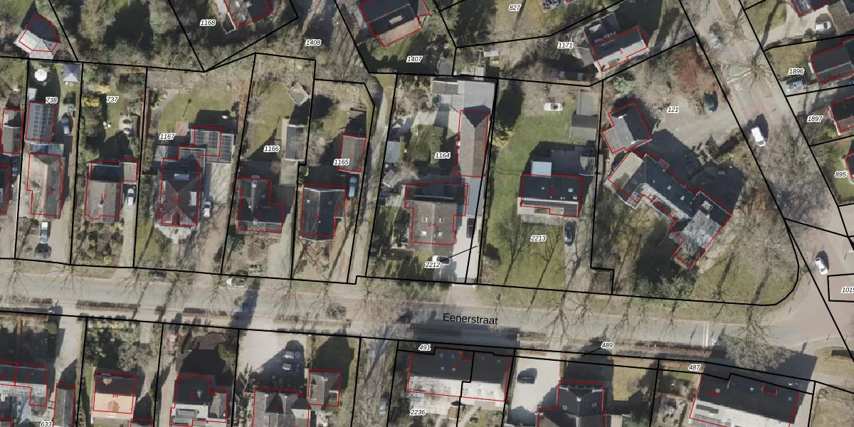 Het perceel waarop Eenerstraat 4 staat heeft een oppervlakte van 1154 m². Dit is een zeer groot perceel. De perceeloppervlakte wordt geregistreerd door het Kadaster. Gedetailleerde informatie over de maten van dit perceel kunt u vinden in het rapport Kadastrale kaart met maatvoering van Eenerstraat 4.
