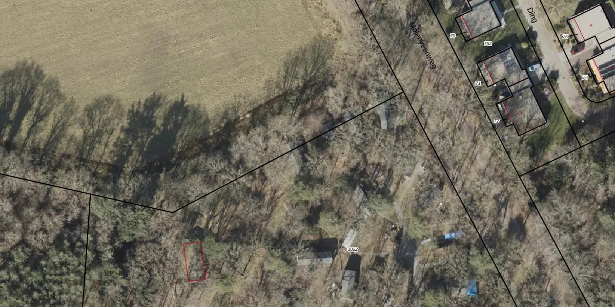 Het adres is gelegen op perceel 3022 in de sectie C en de kadastrale gemeente Norg. De kadastrale aanduiding is aldus NOR00-C-3022. De gemiddelde perceelgrootte in Norg is 1,4 ha. Dit perceel is kleiner: de perceeloppervlakte bedraagt 7920 m². Het kleinste perceel in de kadastrale gemeente is 1 m² groot. De grootste perceeloppervlakte is 1,59 km². Op het perceel liggen in totaal 16 adressen. De huidige grenzen van het perceel zijn digitaal in de Basisregistratie Kadaster (BRK) geregistreerd op 30-05-2016.