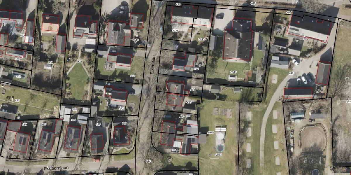 Gebruik de zoekbalk of klik op een perceel voor informatie over de adressen binnen dit perceel.