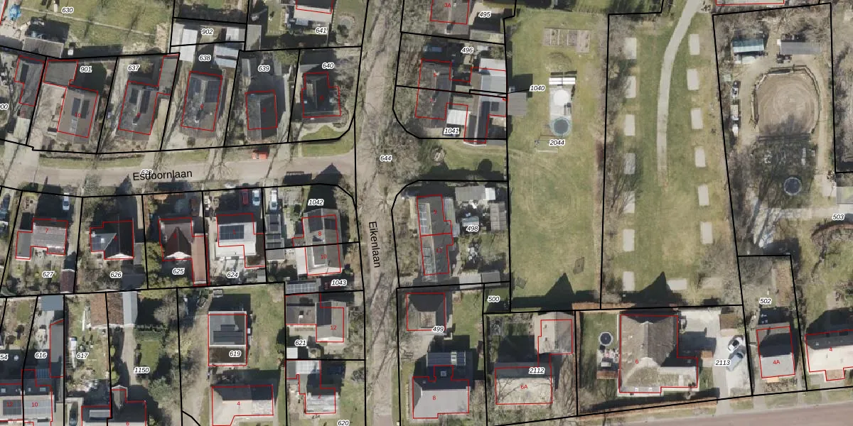 Het perceel waarop Eikenlaan 9 staat heeft een oppervlakte van 640 m². Dit is een groot perceel. De perceeloppervlakte wordt geregistreerd door het Kadaster. Gedetailleerde informatie over de maten van dit perceel kunt u vinden in het rapport Kadastrale kaart met maatvoering van Eikenlaan 9.
