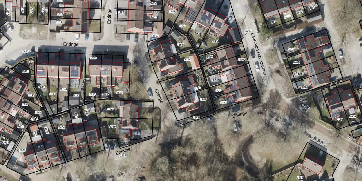 Gebruik de zoekbalk of klik op een perceel voor informatie over de adressen binnen dit perceel.