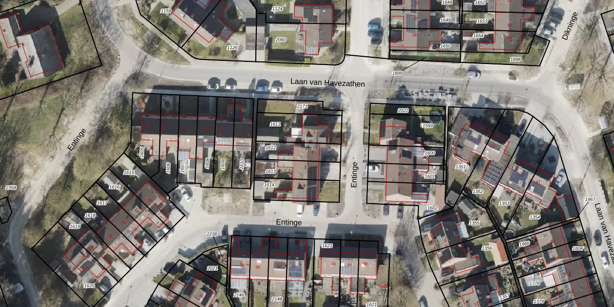 Het perceel waarop Entinge 4 staat heeft een oppervlakte van 165 m². Dit is een middelgroot perceel. De perceeloppervlakte wordt geregistreerd door het Kadaster. Gedetailleerde informatie over de maten van dit perceel kunt u vinden in het rapport Kadastrale kaart met maatvoering van Entinge 4.