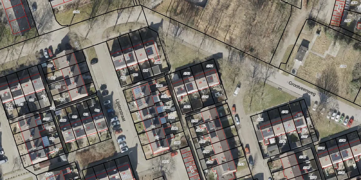 Gebruik de zoekbalk of klik op een perceel voor informatie over de adressen binnen dit perceel.