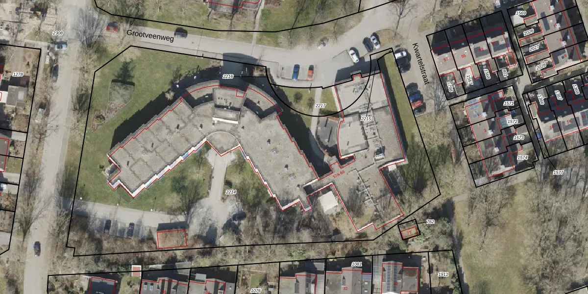 Het perceel waarop Grootveenweg 59-K015 staat heeft een oppervlakte van 6714 m². Dit is een zeer groot perceel. De perceeloppervlakte wordt geregistreerd door het Kadaster. Gedetailleerde informatie over de maten van dit perceel kunt u vinden in het rapport Kadastrale kaart met maatvoering van Grootveenweg 59-K015.
