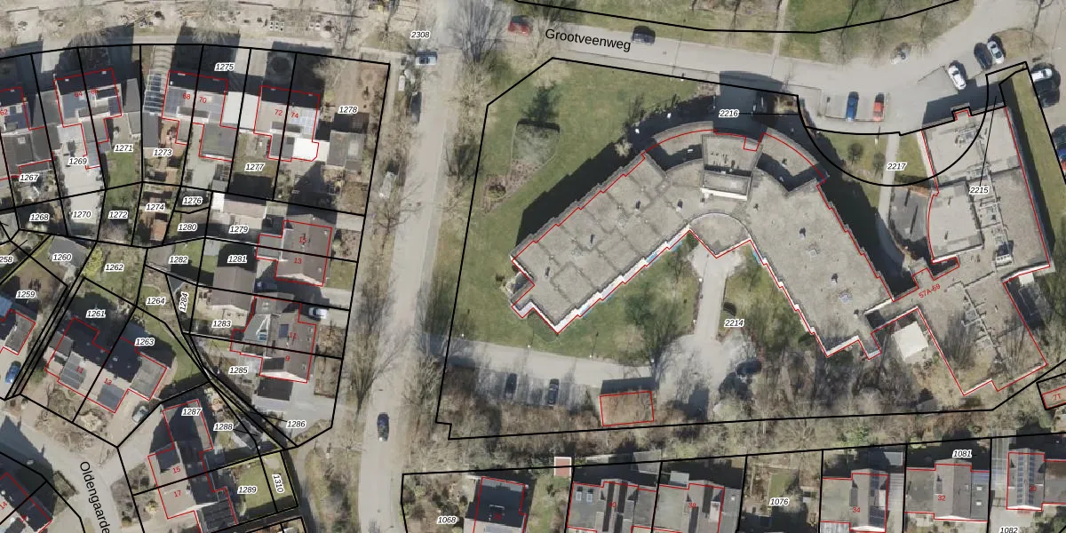 Het perceel waarop Grootveenweg 59-K109 staat heeft een oppervlakte van 6714 m². Dit is een zeer groot perceel. De perceeloppervlakte wordt geregistreerd door het Kadaster. Gedetailleerde informatie over de maten van dit perceel kunt u vinden in het rapport Kadastrale kaart met maatvoering van Grootveenweg 59-K109.