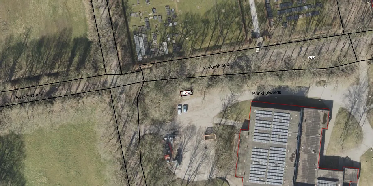 Het perceel waarop het adres ligt is NOR00-R-2268. De afkorting 'NOR00' staat voor kadastrale gemeente Norg. De gemiddelde perceelgrootte in Norg is 1,4 ha. Dit perceel is kleiner: de perceeloppervlakte bedraagt 15 m². De grootste perceeloppervlakte in de kadastrale gemeente is 1,59 km². De kleinste oppervlakte bedraagt 1 m². Dit is het enige adres dat aanwezig is op het perceel. In de Basisregistratie Kadaster (BRK) werden de grenzen van het perceel geregistreerd op 26-01-2015.