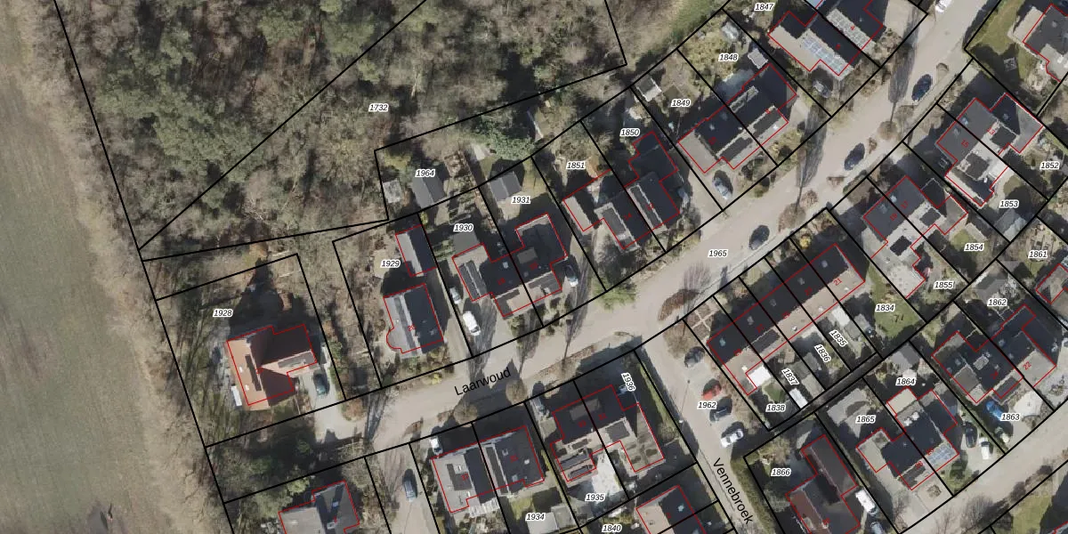 Het perceel waarop Laarwoud 16 staat heeft een oppervlakte van 361 m². Dit is een groot perceel. De perceeloppervlakte wordt geregistreerd door het Kadaster. Gedetailleerde informatie over de maten van dit perceel kunt u vinden in het rapport Kadastrale kaart met maatvoering van Laarwoud 16.