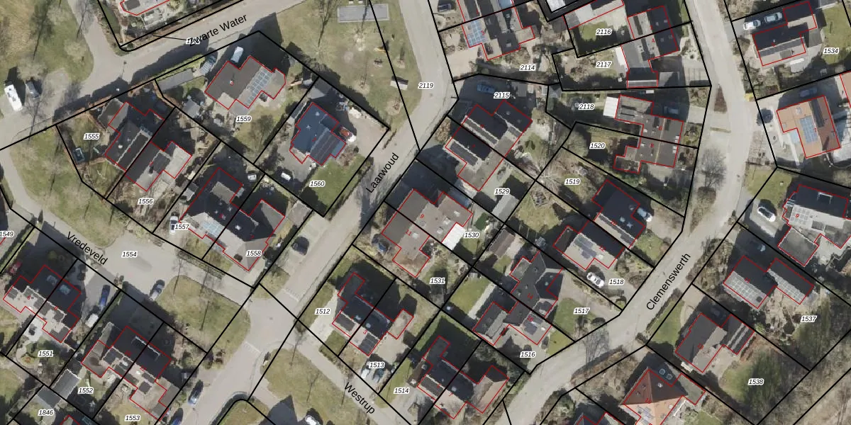 Gebruik de zoekbalk of klik op een perceel voor informatie over de adressen binnen dit perceel.