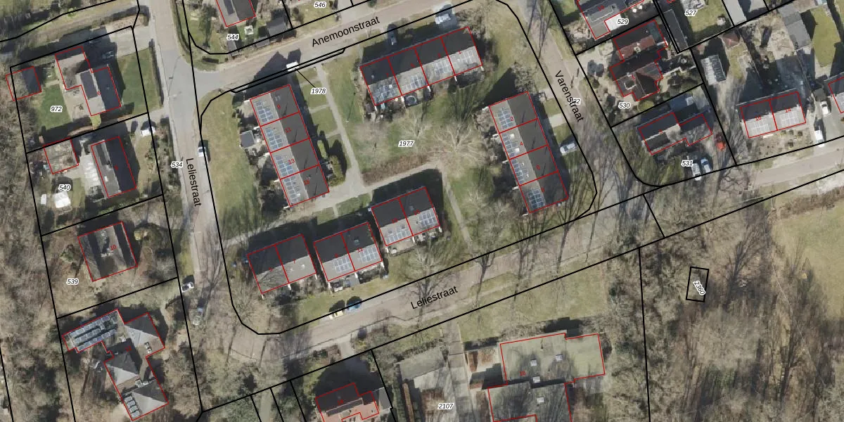 Het perceel waarop Leliestraat 15 staat heeft een oppervlakte van 4845 m². Dit is een zeer groot perceel. De perceeloppervlakte wordt geregistreerd door het Kadaster. Gedetailleerde informatie over de maten van dit perceel kunt u vinden in het rapport Kadastrale kaart met maatvoering van Leliestraat 15.