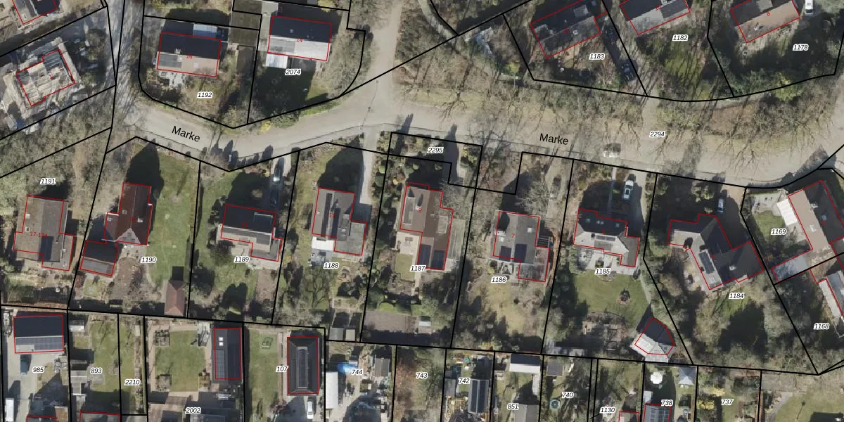Het perceel waarop Marke 9 staat heeft een oppervlakte van 921 m². Dit is een groot perceel. De perceeloppervlakte wordt geregistreerd door het Kadaster. Gedetailleerde informatie over de maten van dit perceel kunt u vinden in het rapport Kadastrale kaart met maatvoering van Marke 9.