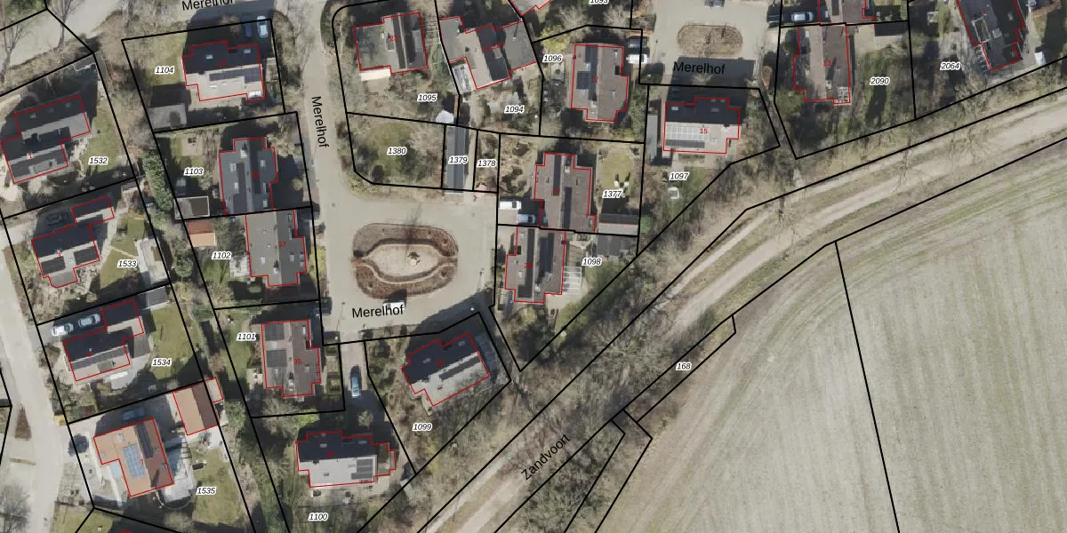 Het perceel waarop Merelhof 29 staat heeft een oppervlakte van 448 m². Dit is een groot perceel. De perceeloppervlakte wordt geregistreerd door het Kadaster. Gedetailleerde informatie over de maten van dit perceel kunt u vinden in het rapport Kadastrale kaart met maatvoering van Merelhof 29.