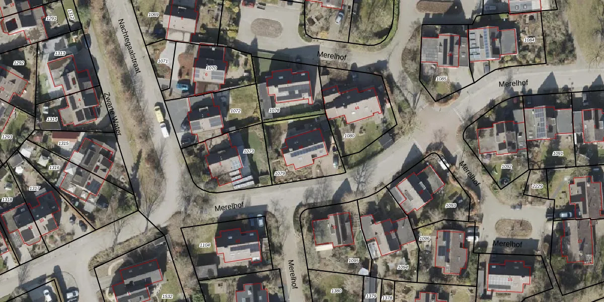 Het perceel waarop Merelhof 46 staat heeft een oppervlakte van 489 m². Dit is een groot perceel. De perceeloppervlakte wordt geregistreerd door het Kadaster. Gedetailleerde informatie over de maten van dit perceel kunt u vinden in het rapport Kadastrale kaart met maatvoering van Merelhof 46.