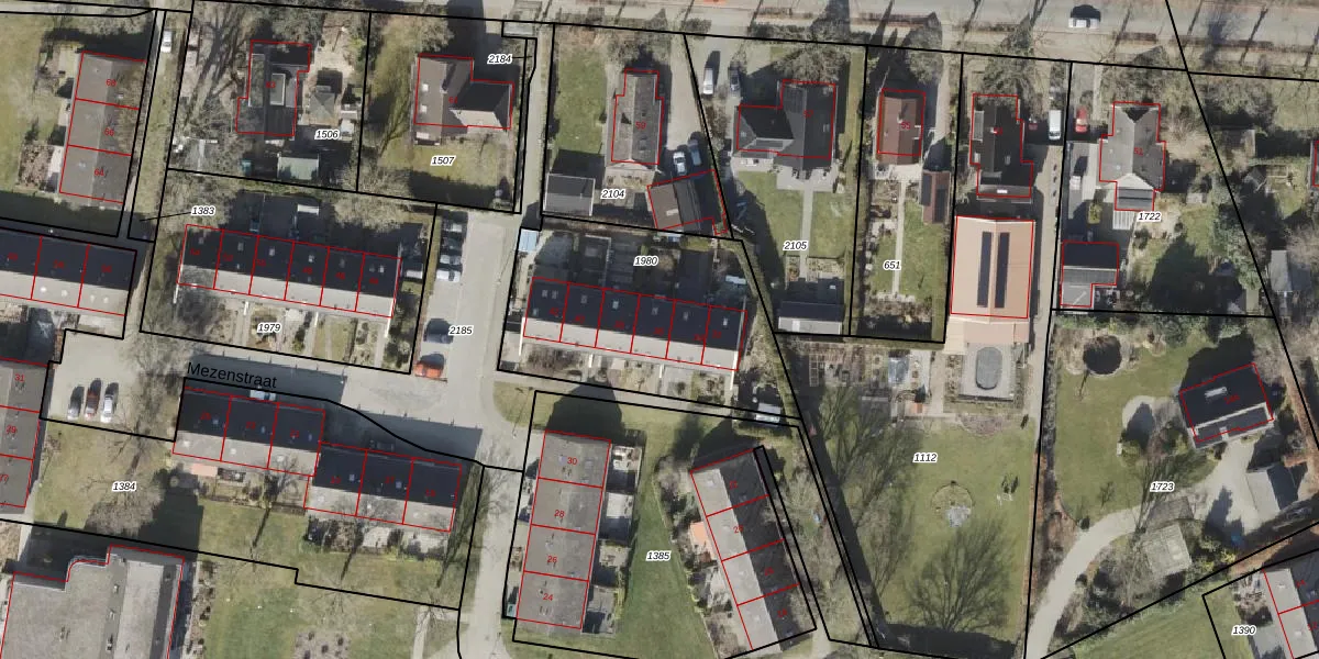 Het perceel waarop Mezenstraat 36 staat heeft een oppervlakte van 985 m². Dit is een groot perceel. De perceeloppervlakte wordt geregistreerd door het Kadaster. Gedetailleerde informatie over de maten van dit perceel kunt u vinden in het rapport Kadastrale kaart met maatvoering van Mezenstraat 36.