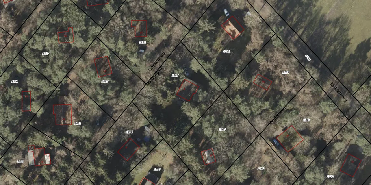 Het perceel waarop Middenpad 3 staat heeft een oppervlakte van 1430 m². Dit is een zeer groot perceel. De perceeloppervlakte wordt geregistreerd door het Kadaster. Gedetailleerde informatie over de maten van dit perceel kunt u vinden in het rapport Kadastrale kaart met maatvoering van Middenpad 3.