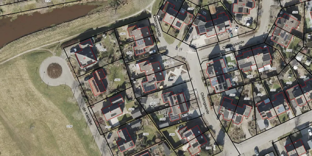 Het perceel waarop Oldengaarde 36 staat heeft een oppervlakte van 433 m². Dit is een groot perceel. De perceeloppervlakte wordt geregistreerd door het Kadaster. Gedetailleerde informatie over de maten van dit perceel kunt u vinden in het rapport Kadastrale kaart met maatvoering van Oldengaarde 36.