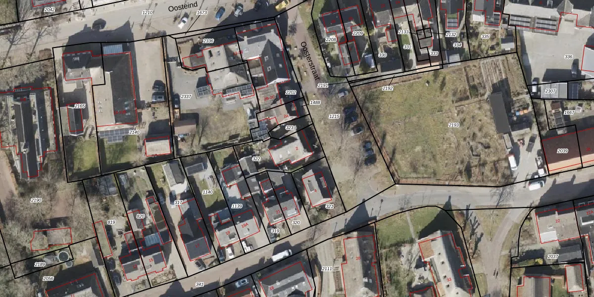 Het perceel waarop Oosterstraat 2 staat heeft een oppervlakte van 326 m². Dit is een groot perceel. De perceeloppervlakte wordt geregistreerd door het Kadaster. Gedetailleerde informatie over de maten van dit perceel kunt u vinden in het rapport Kadastrale kaart met maatvoering van Oosterstraat 2.