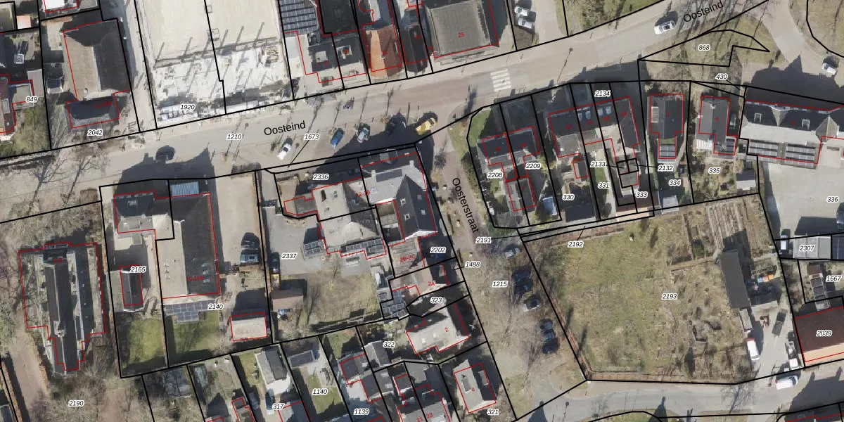 Het perceel waarop Oosterstraat 2-C staat heeft een oppervlakte van 421 m². Dit is een groot perceel. De perceeloppervlakte wordt geregistreerd door het Kadaster. Gedetailleerde informatie over de maten van dit perceel kunt u vinden in het rapport Kadastrale kaart met maatvoering van Oosterstraat 2-C.