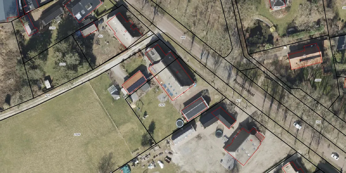 Het perceel waarop Peesterstraat 14-A staat heeft een oppervlakte van 1450 m². Dit is een zeer groot perceel. De perceeloppervlakte wordt geregistreerd door het Kadaster. Gedetailleerde informatie over de maten van dit perceel kunt u vinden in het rapport Kadastrale kaart met maatvoering van Peesterstraat 14-A.