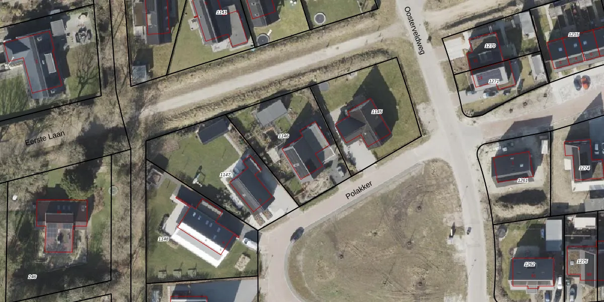 Het perceel waarop Polakker 2 staat heeft een oppervlakte van 865 m². Dit is een groot perceel. De perceeloppervlakte wordt geregistreerd door het Kadaster. Gedetailleerde informatie over de maten van dit perceel kunt u vinden in het rapport Kadastrale kaart met maatvoering van Polakker 2.