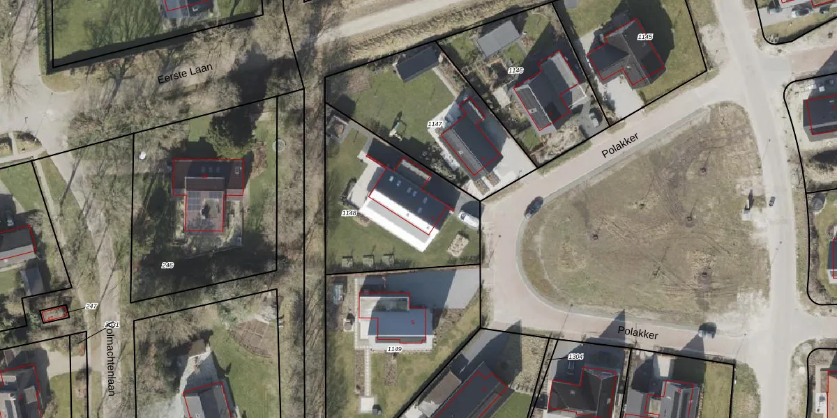 Het perceel waarop Polakker 4 staat heeft een oppervlakte van 1043 m². Dit is een zeer groot perceel. De perceeloppervlakte wordt geregistreerd door het Kadaster. Gedetailleerde informatie over de maten van dit perceel kunt u vinden in het rapport Kadastrale kaart met maatvoering van Polakker 4.