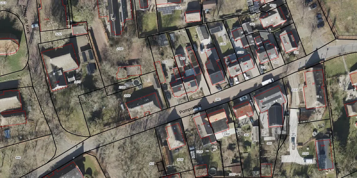 Gebruik de zoekbalk of klik op een perceel voor informatie over de adressen binnen dit perceel.
