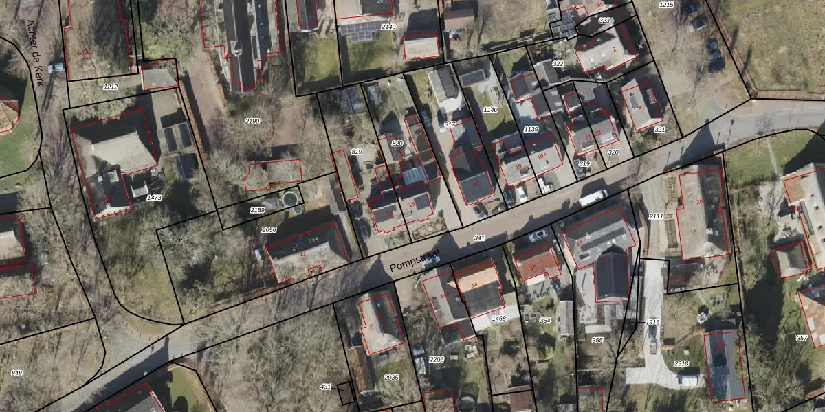 Het perceel waarop Pompstraat 15 staat heeft een oppervlakte van 477 m². Dit is een groot perceel. De perceeloppervlakte wordt geregistreerd door het Kadaster. Gedetailleerde informatie over de maten van dit perceel kunt u vinden in het rapport Kadastrale kaart met maatvoering van Pompstraat 15.