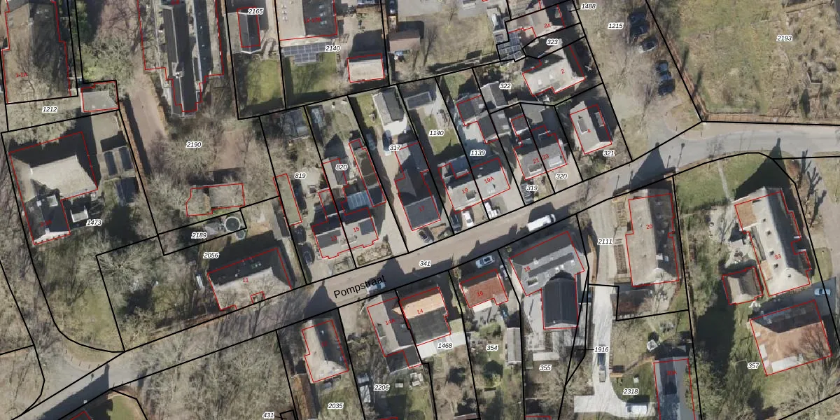 Het perceel waarop Pompstraat 17 staat heeft een oppervlakte van 473 m². Dit is een groot perceel. De perceeloppervlakte wordt geregistreerd door het Kadaster. Gedetailleerde informatie over de maten van dit perceel kunt u vinden in het rapport Kadastrale kaart met maatvoering van Pompstraat 17.