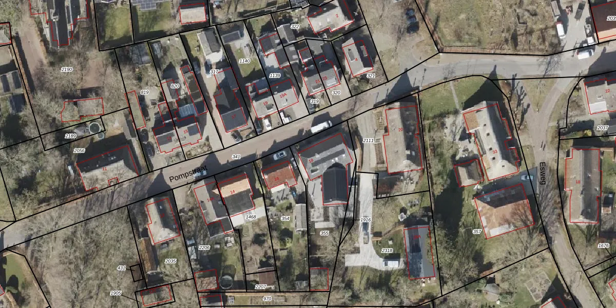 Het perceel waarop Pompstraat 18 staat heeft een oppervlakte van 673 m². Dit is een groot perceel. De perceeloppervlakte wordt geregistreerd door het Kadaster. Gedetailleerde informatie over de maten van dit perceel kunt u vinden in het rapport Kadastrale kaart met maatvoering van Pompstraat 18.